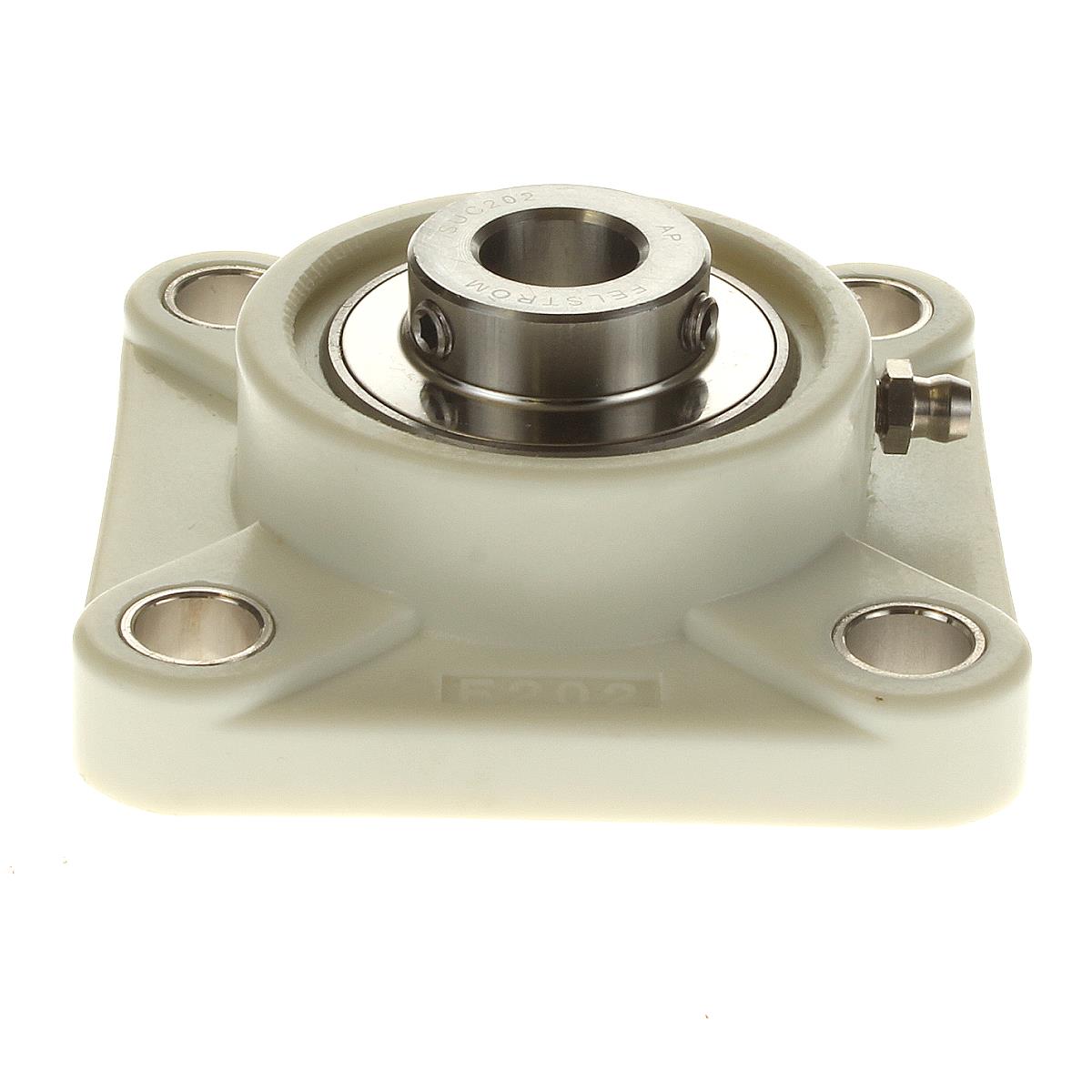 Technical informationFelstrom’s UCF202PSS is a white plastic housing unit with stainless steel insert bearing filled with food-safe Shell FM 22 bearing grease. Felstrom’s plastic housing units are fully filled with 100% white pure plastic preventing the ingress of dirt. These plastic housing units are often applied in the food and medical industries.