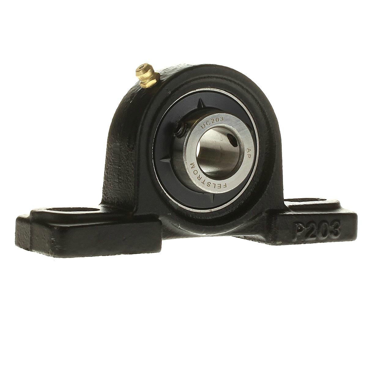 Technical informationFelstrom’s UCP203 is a robust cast iron housing unit for 17 mm shafts (D1). The housing unit consists of bearing housing P203 and insert bearing UC203. Due to their great application flexibility, Felstrom cast iron housing units are our most popular variant. These cast iron housing units are often used in open applications providing space for lubrication as well as fitting and removal.