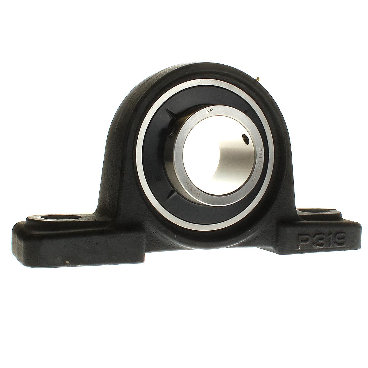 Technical informationFelstrom’s UCP319 is a robust cast iron housing unit for 95 mm shafts (D1). The housing unit consists of bearing housing P319 and insert bearing UC319. Due to their great application flexibility, Felstrom cast iron housing units are our most popular variant. These cast iron housing units are often used in open applications providing space for lubrication as well as fitting and removal.